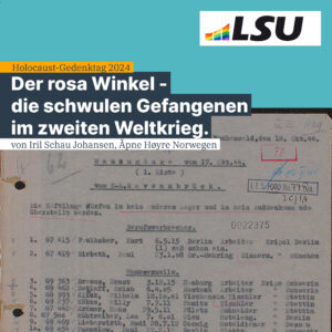 Anlässlich des diesjährigen Holocaust-Gedenktages erzählt Iril Schau Johansen, Mitglied unserer LSU-Schwesterorganisation Åpne Høyre in Norwegen, die Leidensgeschichte des Deutschen Gustav und des Norwegers Charles, deren