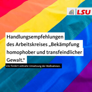LSU fordert zeitnahe Umsetzung der Handlungsempfehlungen des Arbeitskreises „Bekämpfung homophober und transfeindlicher Gewalt“.